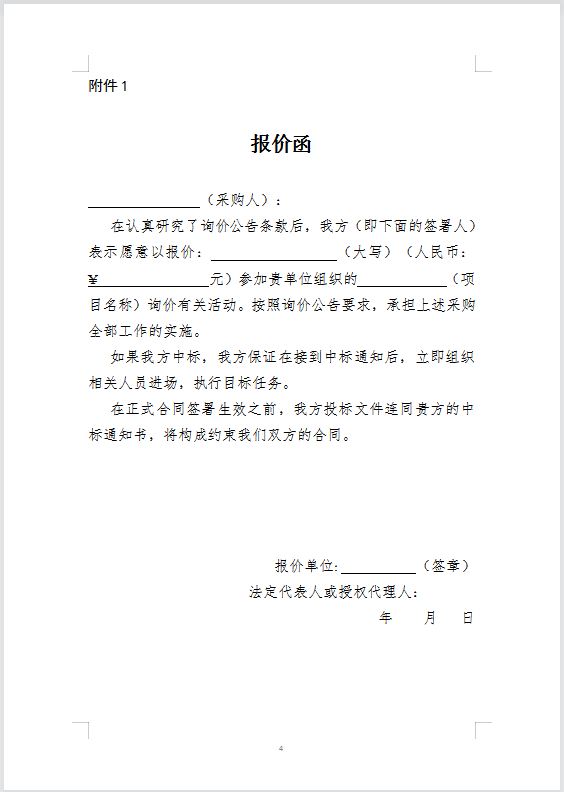 1.文件需包括營業(yè)執(zhí)照(復(fù)印件)、報價表、區(qū)內(nèi)相關(guān)業(yè)績、技術(shù)服務(wù)方案及其他報價單位認(rèn)為需要的資料(見附件2),復(fù)印材料及相關(guān)報價材料都需加蓋鮮章。