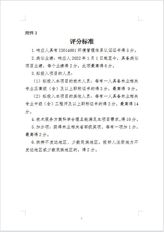 3.工作要求:(1)中標(biāo)單位承擔(dān)組織實施出苗調(diào)查工作及調(diào)查報告的編寫,認(rèn)真執(zhí)行《中華人民共和國森林法》及有關(guān)法律法規(guī),確保報告符合《飛播造林技術(shù)規(guī)程》(GB/T 15162-2018)及其他相關(guān)規(guī)定要求。