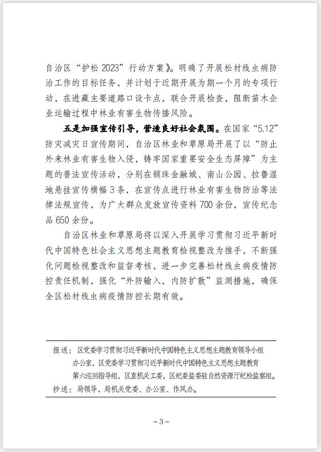 專(zhuān)報(bào) 第7期 聚焦主題教育檢視問(wèn)題整改 推動(dòng)完成松材線(xiàn)蟲(chóng)病普查工作