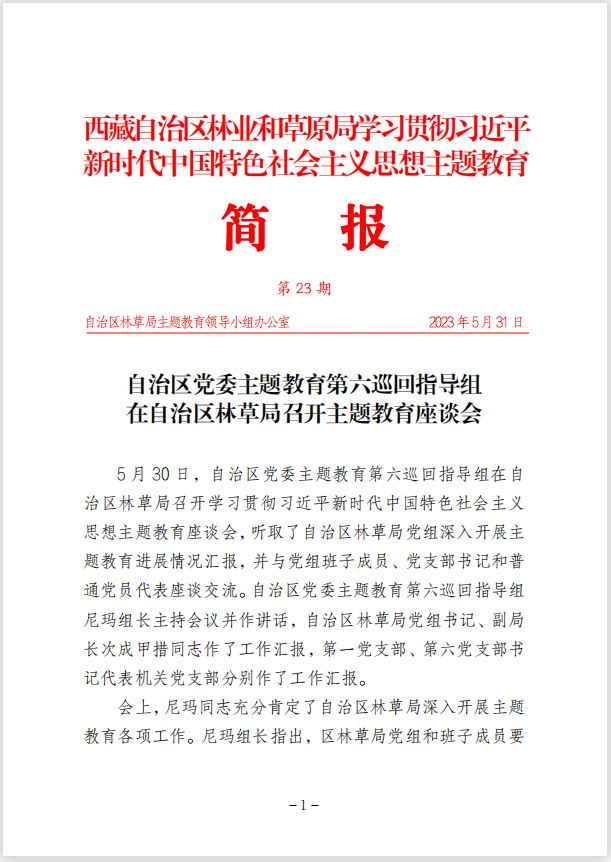 第23期 自治區(qū)黨委主題教育第六巡回指導(dǎo)組在自治區(qū)林草局召開主題教育座談會(huì)