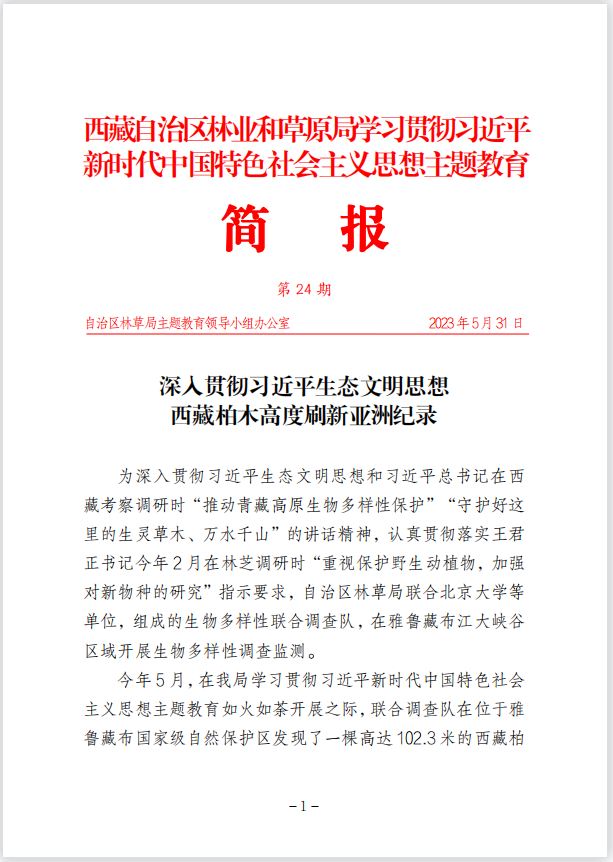 第24期 深入貫徹習(xí)近平生態(tài)文明思想 西藏柏木高度刷新亞洲紀(jì)錄