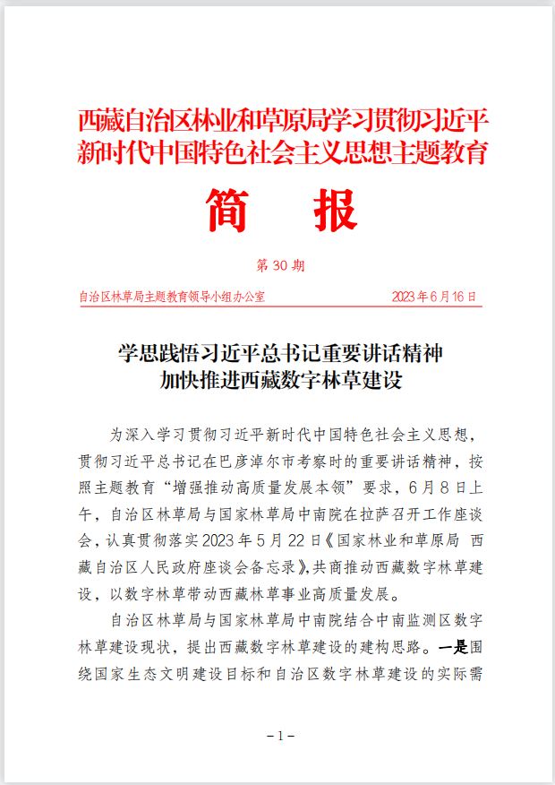 第30期 學(xué)思踐悟習(xí)近平總書(shū)記重要講話精神 加快推進(jìn)西藏?cái)?shù)字林草建設(shè)