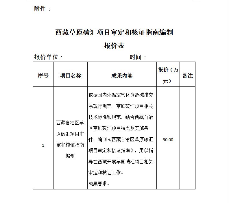1.項(xiàng)目名稱:西藏草原碳匯項(xiàng)目審定和核證標(biāo)準(zhǔn)指南編制