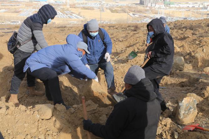 自拉薩南北山綠化2024年度鞏固提升項(xiàng)目啟動(dòng)以來(lái),在包保領(lǐng)導(dǎo)的親自部署推動(dòng)下,桑珠林4號(hào)片區(qū)高效推進(jìn)2024年度鞏固提升工作,鋪設(shè)田間管網(wǎng)3.47萬(wàn)米,開(kāi)挖種植穴25.03萬(wàn)個(gè)(灌木3.07萬(wàn),喬木21.96萬(wàn)),完成客土0.21萬(wàn)立方米,整地進(jìn)度達(dá)75%左右。為貫徹落實(shí)拉薩南北山綠化指揮部領(lǐng)導(dǎo)相關(guān)指示要求,統(tǒng)籌好高效推進(jìn)鞏固提升和高標(biāo)準(zhǔn)開(kāi)展造林綠化的關(guān)系,引導(dǎo)全體黨員干部在實(shí)踐中強(qiáng)化對(duì)規(guī)范整地的認(rèn)識(shí),杜絕閉門造車問(wèn)題的發(fā)生,根據(jù)局黨組有關(guān)指示,自治區(qū)林規(guī)院開(kāi)展了此次主題黨日活動(dòng)。黨委班子、拉薩南北山綠化指揮部辦公室黨員同志與全院120余名黨員干部一同在一個(gè)個(gè)挖掘機(jī)開(kāi)挖的坑穴中間揮鐵鍬、撿石塊,迎著凜冽的寒風(fēng),嚴(yán)格對(duì)照相關(guān)標(biāo)準(zhǔn),認(rèn)真細(xì)致地修整種植穴,勞動(dòng)一絲不茍、場(chǎng)面熱火朝天。經(jīng)過(guò)兩個(gè)小時(shí)的集中勞動(dòng),1000多個(gè)標(biāo)準(zhǔn)的種植穴整齊排列在山坡上。