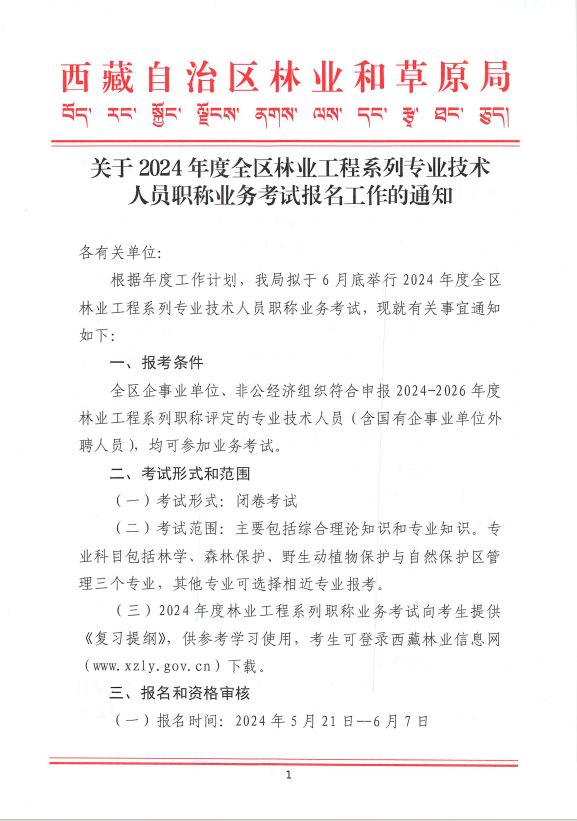 關(guān)于2024年度全區(qū)林業(yè)工程系列專業(yè)技術(shù)人員職稱業(yè)務(wù)考試報名工作的通知
