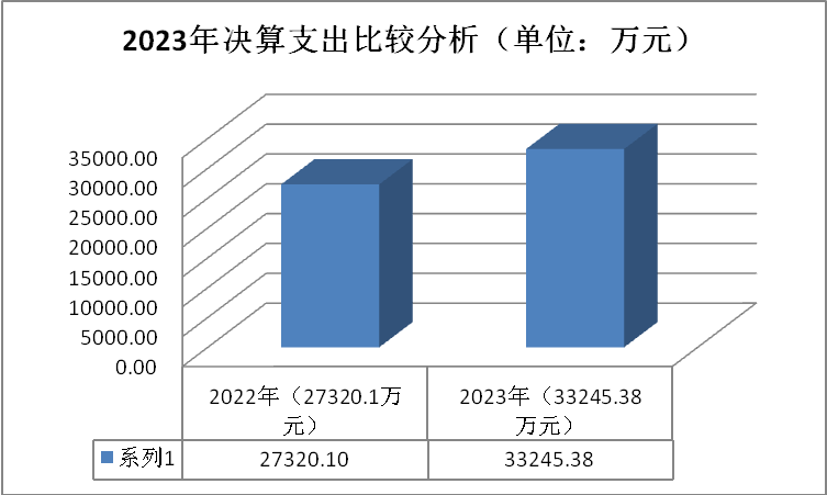 2023年財政撥款決算合計支出33245.38萬元,與2022年財政撥款預(yù)算支出27320.1萬元相比,增加了5925.28萬元,增加21.69%,較2022年年中追加資金量大且預(yù)算執(zhí)行率有所提高。
