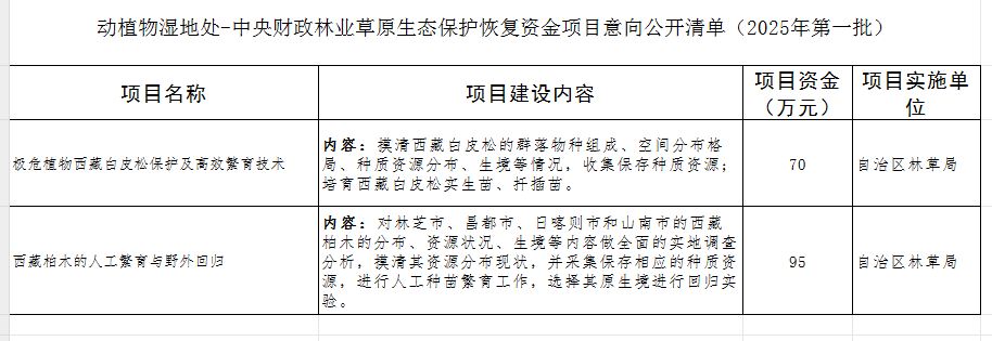 中央財(cái)政林業(yè)草原生態(tài)保護(hù)恢復(fù)資金項(xiàng)目意向公開清單(2025年第一批)