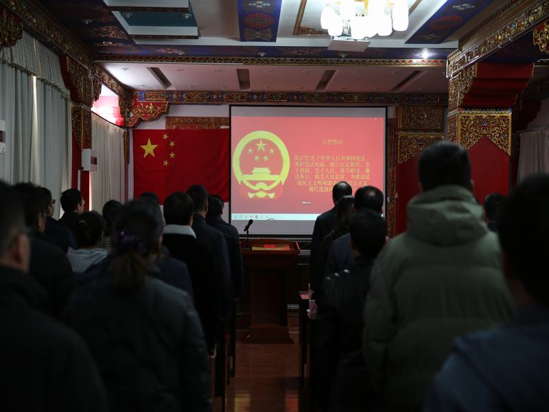 宣誓儀式在雄壯的國歌聲中了拉開序幕,西藏自治區(qū)林業(yè)和草原局局黨組成員、副局長、機(jī)關(guān)黨委書記拉增同志左手撫按憲法,右手舉拳領(lǐng)誓,帶領(lǐng)全體干部職工莊嚴(yán)宣誓。鏗鏘的誓言表達(dá)著我們對黨、對國家、對人民鄭重的承諾,堅(jiān)定著我們尊崇、維護(hù)、恪守憲法的政治自覺。