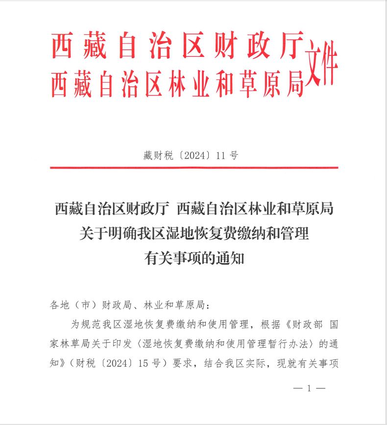 西藏自治區(qū)財政廳 西藏自治區(qū)林業(yè)和草原局關(guān)于明確我區(qū)濕地恢復(fù)費繳納和管理有關(guān)事項的通知