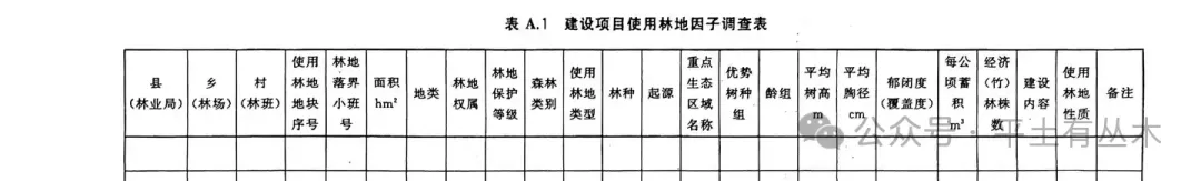 A.1建設項目使用林地因子調查表是建設項目使用林地現狀調查表附表中的第一個表,主要填寫使用林地的小班屬性。