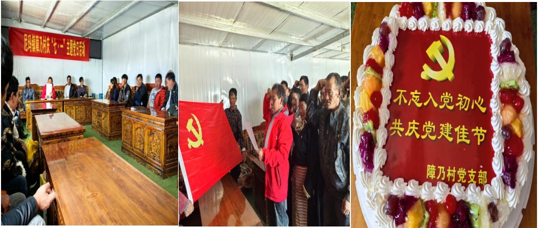 駐村工作隊(duì)和村黨支部舉行慶“七·一”主題黨日活動(dòng),堅(jiān)持“第一議題”制度,及時(shí)傳達(dá)學(xué)習(xí)習(xí)近平總書記給林芝市巴宜區(qū)林芝鎮(zhèn)嘎拉村全體村民的重要回信精神,帶領(lǐng)黨員認(rèn)真領(lǐng)悟習(xí)近平總書記對西藏人民的特殊厚愛和重要回信精神的深刻內(nèi)涵,全體黨員紛紛表示將牢記習(xí)近平總書記殷殷囑托,謹(jǐn)記“看著北斗星走不迷路、跟著共產(chǎn)黨走會(huì)幸福”,團(tuán)結(jié)帶領(lǐng)農(nóng)牧民群眾堅(jiān)定不移聽黨話、感黨恩、跟黨走,共同創(chuàng)造幸福美好生活;全體黨員重溫入黨誓詞,面向鮮紅的黨旗高舉右拳,以莊嚴(yán)儀式叩問初心,以錚錚誓言提醒自己時(shí)刻銘記第一身份是共產(chǎn)黨員、第一職責(zé)是為黨工作,以更加昂揚(yáng)的姿態(tài)和奮發(fā)的精神踐行黨的宗旨;駐村隊(duì)員和村黨支部書記一起為全體黨員切分生日蛋糕,進(jìn)一步增強(qiáng)他們的榮譽(yù)感、歸屬感、使命感,營造了濃厚的建黨節(jié)日氛圍。