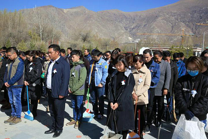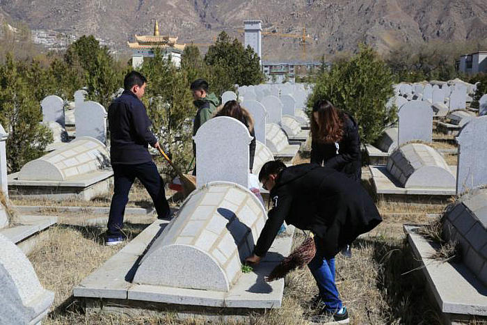 2017年4月1日上午,林業(yè)廳黨員和志愿者前往拉薩幸福社區(qū)報到,參加社區(qū)志愿活動。在幸福社區(qū)黨支部的帶領(lǐng)下前往拉薩烈士陵園,參加了“緬懷革命英烈,弘揚光榮傳統(tǒng)”為主題的清明節(jié)祭掃活動。