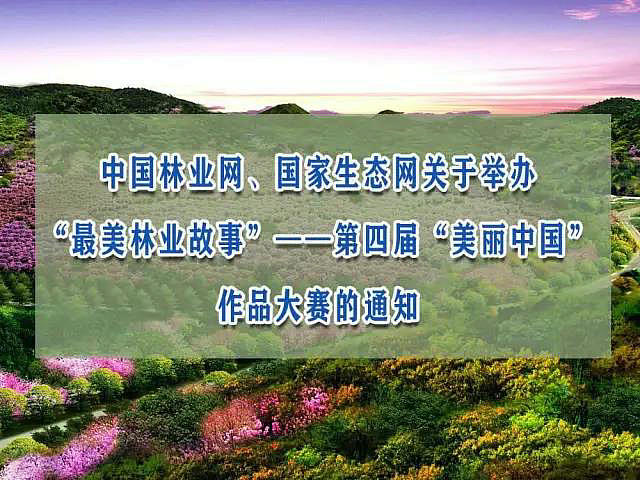 為迎接黨的十九大勝利召開,進一步講好林業(yè)故事、弘揚網絡正能量,倡導綠色健康生活、營造網絡文化氛圍,經認真研究,決定以中國林業(yè)網、國家生態(tài)網為平臺舉辦“最美林業(yè)故事”——第四屆“美麗中國”作品大賽。現將有關事項通知如下: