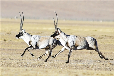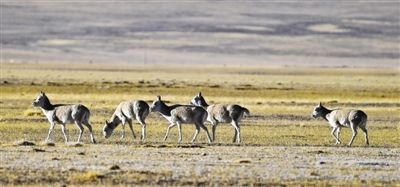 藏羚羊是棲息于海拔3700米至5500米的高山草原、草甸和高寒荒漠地帶的珍稀瀕危野生動(dòng)物,也是國(guó)家一級(jí)保護(hù)動(dòng)物。近年來(lái),西藏羌塘國(guó)家級(jí)自然保護(hù)區(qū)藏羚羊由保護(hù)前的6萬(wàn)多只已恢復(fù)到現(xiàn)在的15萬(wàn)多只。每年的11月至12月是藏羚羊的交配期,在此期間,“分居”半年之久的雌雄藏羚羊從各自生活區(qū)域遷徙數(shù)百公里,聚集到冬季交配地,開始“群居”生活。圖為申扎縣買巴鄉(xiāng)魯確塘國(guó)家級(jí)自然保護(hù)區(qū)內(nèi)的藏羚羊。
