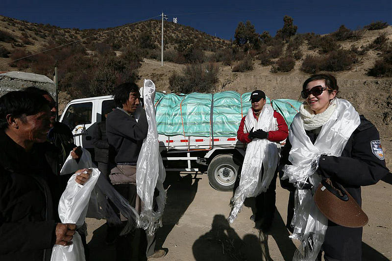 徐躍代表廳黨組對拉托、來義、藏巴、達根4個村的次仁巴珍等4戶貧困戶敬獻哈達并發(fā)放慰問金,表達對他們的親切慰問,希望他們在當?shù)攸h委、政府的領(lǐng)導下,在駐村工作隊的幫助下,通過自身努力早日實現(xiàn)脫貧致富。