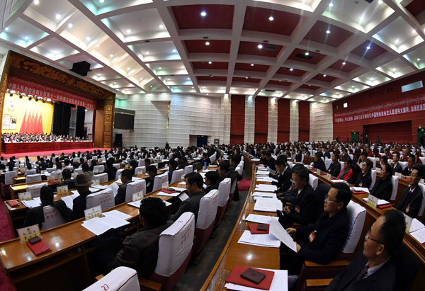 1月29日下午,自治區(qū)政協(xié)十一屆一次會議圓滿完成各項議程在拉薩勝利閉幕。圖為閉幕會會場。記者 洛桑 次旺 攝