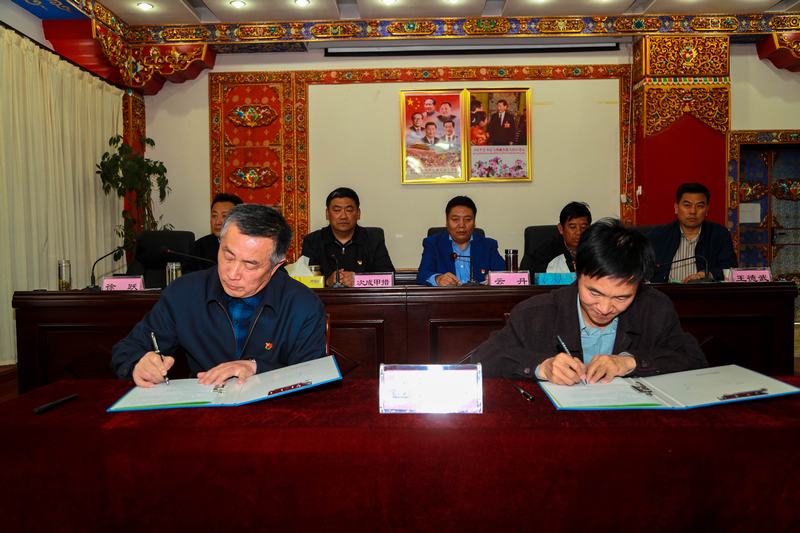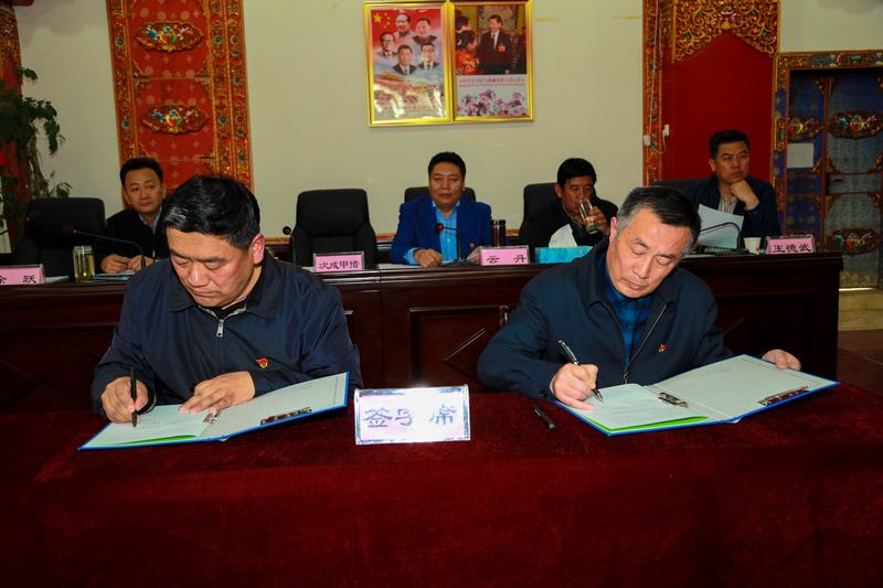 圖為:廳黨組書記次成甲措與廳副巡視員、機(jī)關(guān)黨委書記徐躍簽訂2018年黨建工作責(zé)任書