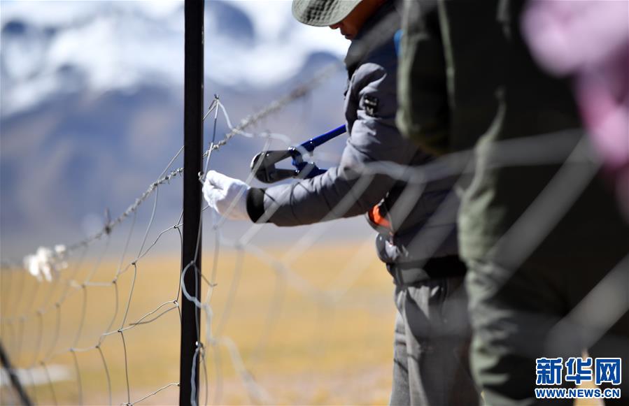 6月15日,西藏那曲市尼瑪縣林業(yè)公安在拆除網(wǎng)圍欄。新華社記者 覺果 攝