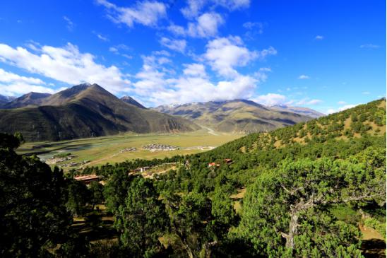 林周縣地處西藏中部,屬雅魯藏布江中游河谷地帶。念青唐古拉山支脈卡拉山脈橫貫全境,將林周縣分割為南北兩大部分,北部屬拉薩河上游及其源流區(qū),以山地為主,平均海拔4160米。由于海拔較高,遠(yuǎn)離干暖河谷,氣候較冷,濕度較大,因此植被區(qū)別于其它地區(qū),形成該區(qū)特有的高山林灌植被—大果圓柏林,是西高山灌叢地區(qū)北部邊緣帶森林植被的殘遺群落,也是位于拉薩市最近的天然林區(qū),面積6200公頃,分布比較集中,林相整齊。千姿百態(tài)的大果圓柏以其特有的瑰麗狀觀、古樸蒼勁與雪山、藍(lán)天、峽谷、河流遙相呼應(yīng),深深的吸引著每一個走進(jìn)森林公園的人。
