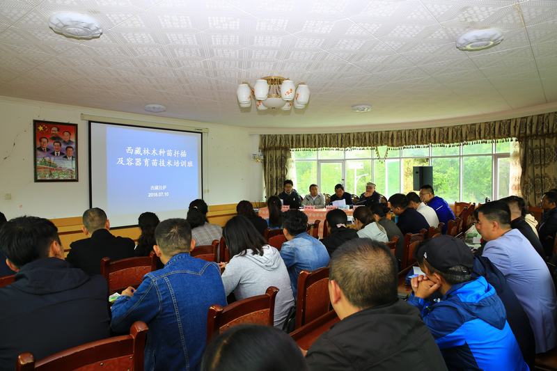 為提高全區(qū)育苗技術(shù)水平,增加苗木自供能力,縮短育苗時間,緩解我區(qū)苗木短缺的狀況,為我區(qū)造林綠化工程提供更多的良種壯苗,2018年7月9~7月11日在拉薩舉辦了全區(qū)林木種苗容器育苗及扦插繁殖技術(shù)培訓(xùn)班。自治區(qū)林業(yè)廳索朗旺堆副廳長、廳相關(guān)處室、七市地造林科負責(zé)人、中心苗圃、部分重點縣林業(yè)局苗圃及兩個萬畝和五個千畝苗圃技術(shù)人員,共60余人參加了培訓(xùn)。