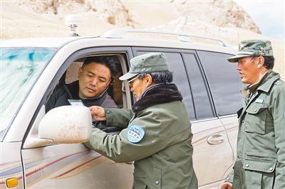 加松巴管理站工作人員嚴(yán)格查驗(yàn)進(jìn)保護(hù)區(qū)的車(chē)輛。沒(méi)有西藏自治區(qū)林業(yè)部門(mén)的特別許可,任何車(chē)輛和人員都不得進(jìn)入。本報(bào)記者 鄧建勝攝