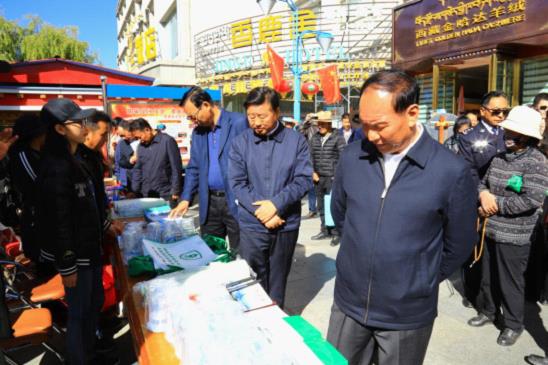 10月17日是全國(guó)第5個(gè)“扶貧日”,也是第26個(gè)世界“消除貧困日”。為充分展示西藏脫貧攻堅(jiān)實(shí)踐成果,展示扶貧先進(jìn)典型,進(jìn)一步提振士氣、匯聚正能量,打好打贏脫貧攻堅(jiān)戰(zhàn)營(yíng)造良好社會(huì)氛圍,17日,自治區(qū)脫貧攻堅(jiān)指揮部各成員單位和拉薩市脫貧攻堅(jiān)指揮部共計(jì)40家單位,在宇拓路開(kāi)展了西藏自治區(qū)2018年“扶貧日”一條街宣傳活動(dòng)。區(qū)黨委副書(shū)記、自治區(qū)主席齊扎拉,區(qū)黨委常務(wù)副書(shū)記、區(qū)政協(xié)黨組書(shū)記丁業(yè)現(xiàn),區(qū)黨委常委、自治區(qū)常務(wù)副主席羅布頓珠,區(qū)黨委常委、拉薩市委書(shū)記白瑪旺堆出席視察活動(dòng)現(xiàn)場(chǎng)。