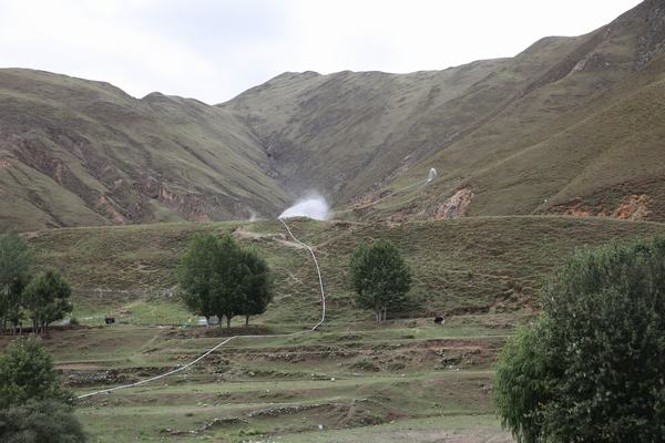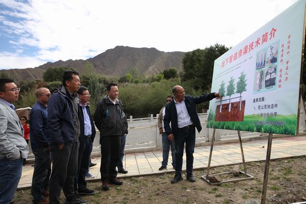 項(xiàng)目負(fù)責(zé)人譚言慶就慈覺(jué)林村江水上山試驗(yàn)項(xiàng)目的開展情況進(jìn)行了介紹。該項(xiàng)目是針對(duì)西藏復(fù)雜多樣的高原河谷地形和降水少、蒸發(fā)大,季節(jié)性干旱嚴(yán)重等,由自治區(qū)林草局組織進(jìn)行的試驗(yàn)項(xiàng)目,計(jì)劃投資58萬(wàn)元。試驗(yàn)項(xiàng)目不使用電力和汽油、柴油動(dòng)力,利用河水自然動(dòng)能,進(jìn)行提灌,提灌揚(yáng)程達(dá)110m,出水量約50m3/h,水能提灌設(shè)備運(yùn)行狀態(tài)良好。同時(shí),項(xiàng)目技術(shù)負(fù)責(zé)人譚言慶介紹了地下滲灌技術(shù),該項(xiàng)目由自治區(qū)林草局提出,自治區(qū)林科院進(jìn)行試驗(yàn),通過(guò)容量約3t左右的滲水池,可精準(zhǔn)灌溉樹木約3000株。該灌溉方式與漫灌、噴灌、滴灌方式相比較,具有灌水精確、施肥精準(zhǔn)、成本低廉、操作簡(jiǎn)便等優(yōu)點(diǎn)。