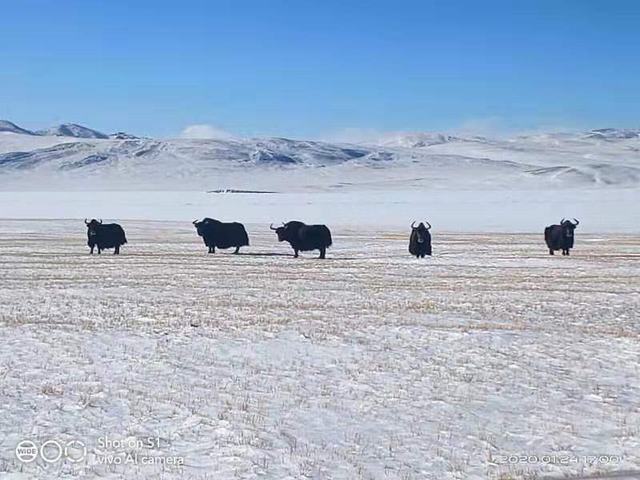 圖為阿里地區(qū)野保員在保護區(qū)內(nèi)巡護時遇到野牦牛