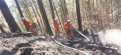 隊員們采取一點突破、兩翼推進的戰(zhàn)術,沿火線邊緣邊撲打明火邊開挖隔離帶。隊員們抓住火場無風的有利條件,超強度連續(xù)作業(yè),下午1時,整個火場實現(xiàn)合圍。