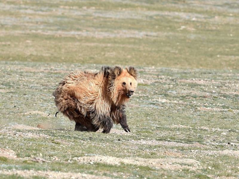 奔跑中的西藏棕熊。(新華社記者 覺果 攝)