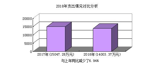 全年決算實(shí)際支出14003.37萬元。與2017年15047.26萬元相比,減少了1043.89萬元,減少了6.94%。