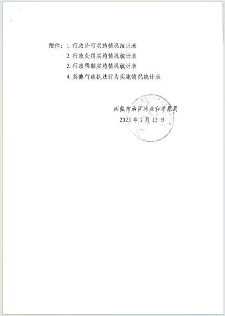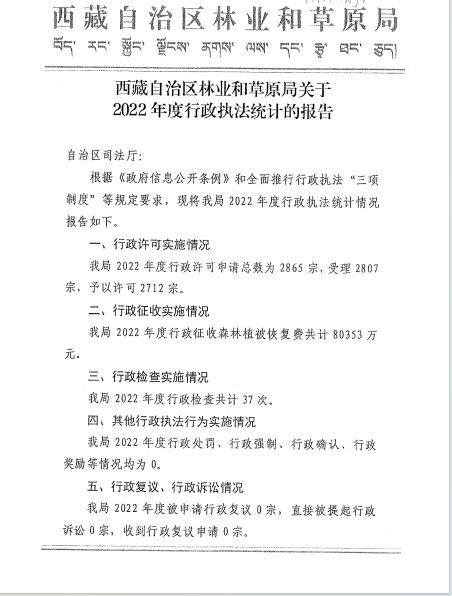 西藏自治區(qū)林業(yè)和草原局關(guān)于2022年度行政執(zhí)法統(tǒng)計(jì)的報(bào)告