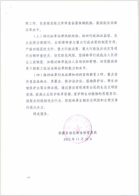 西藏自治區(qū)林業(yè)和草原局關(guān)于2022年度法治政府建設(shè)工作情況總結(jié)的報(bào)告