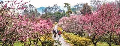 南京梅花山呈現(xiàn)一片粉紅色的花海,吸引著人們前來(lái)踏青尋梅 谷昌旺攝