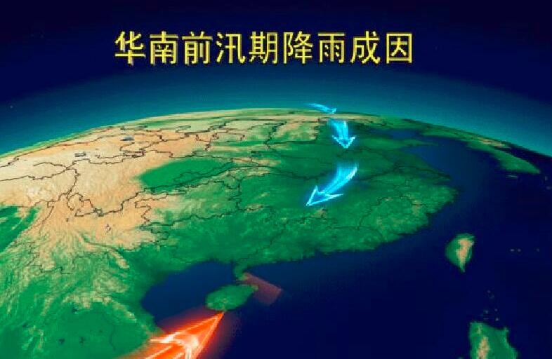 研究認(rèn)為,春季時(shí)青藏高原大地形對(duì)低層西風(fēng)的阻擋引起了繞流,其北支氣流加強(qiáng)了北方冷空氣在高原東側(cè)的南下;同時(shí),作為一個(gè)弱熱源,它的熱力作用加強(qiáng)了高原南側(cè)的南支西風(fēng)氣流,為華南地區(qū)輸送了大量的暖濕空氣。冷暖空氣的交匯,加強(qiáng)了華南地區(qū)春季的降水。