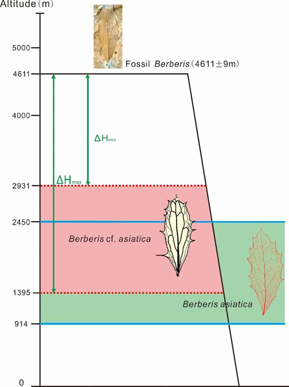 中國科學(xué)院植物研究所王宇飛研究組與中國科學(xué)院古脊椎動(dòng)物與古人類研究所鄧濤研究組及英國、奧地利、印度等國專家合作,首次發(fā)現(xiàn)、描述和報(bào)道了在藏北可可西里地區(qū)五道梁盆地(海拔4611±9米)早中新世五道梁組地層發(fā)現(xiàn)的小檗葉化石。研究人員發(fā)現(xiàn)該化石植物的最近親緣種為亞洲小檗,該親緣種植物現(xiàn)今還生活在喜馬拉雅山南坡海拔范圍914-2450米之間的地區(qū)。考慮到全球中新世與今天存在溫度差異,經(jīng)過海拔校正后,研究人員估測(cè)藏北可可西里的古海拔在1395-2931米之間,這意味著在過去的17個(gè)百萬年中,該地區(qū)至少抬升了2-3千米。這一發(fā)現(xiàn)不支持先前有關(guān)藏北地區(qū)在中新世之前已抬升甚至超過今天高度的假說。
