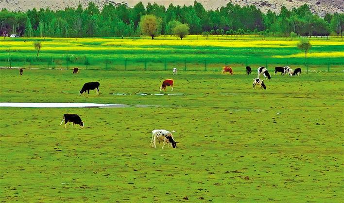山南市扎囊縣桑耶風光。記者 洛桑 攝 夏日的拉魯濕地美如畫。這是野鴨在拉魯濕地的水...