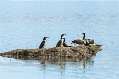 鸕鶿生活在濕地的小島上。 鸕鶿與赤麻鴨、斑頭雁等在卡孜水庫(kù)棲息、覓食。 每...